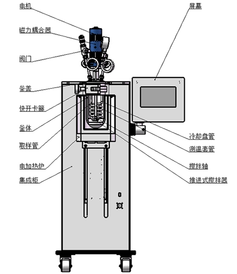 產(chǎn)品功能和特點(diǎn):升降型式,機(jī)電一體化設(shè)計(jì)、結(jié)構(gòu)緊湊;框架支撐結(jié)構(gòu),配腳輪方便移動(dòng);主體可快開(kāi)設(shè)計(jì),開(kāi)閉釜操作方便、快捷;升降輔助機(jī)構(gòu)方便操作,手動(dòng)/電動(dòng)可選;高扭矩磁力傳動(dòng),配優(yōu)選電機(jī),提升運(yùn)行穩(wěn)定性;攪拌支持定制槳葉類型,適配多樣化攪拌需求;加熱爐傳熱快,均熱效果好,效率可調(diào);真彩色觸控屏,模塊化顯示,控制界面操作簡(jiǎn)潔;支持遠(yuǎn)程控制,具備RS485通訊口,配上位機(jī)軟件;可顯示工作時(shí)間/溫度/轉(zhuǎn)速/壓力,PID自整定控溫精準(zhǔn);具備安全連鎖功能,超溫超壓報(bào)警;具備數(shù)據(jù)采集,記錄以及報(bào)表導(dǎo)出功能;支持選配加料、計(jì)量、取樣、冷凝等擴(kuò)展功能。